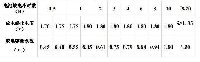 【导语】: I——负荷电流(A); T——放电小时数(H); η——放电容量系数; t——实际电池所在地最低环境温度值(广东按 5℃考虑) α——电池温度系数(1/℃), 当放电小时率≥10 时,取 α=0.006; 当 10>放电小时率≥1 时,取 α=0.008 |